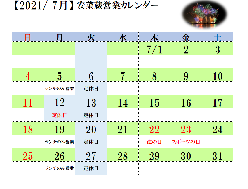 7/12月曜日はお休みさせて頂きます。