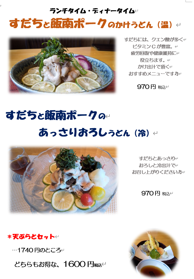 すだちと飯南ポークのうどん。